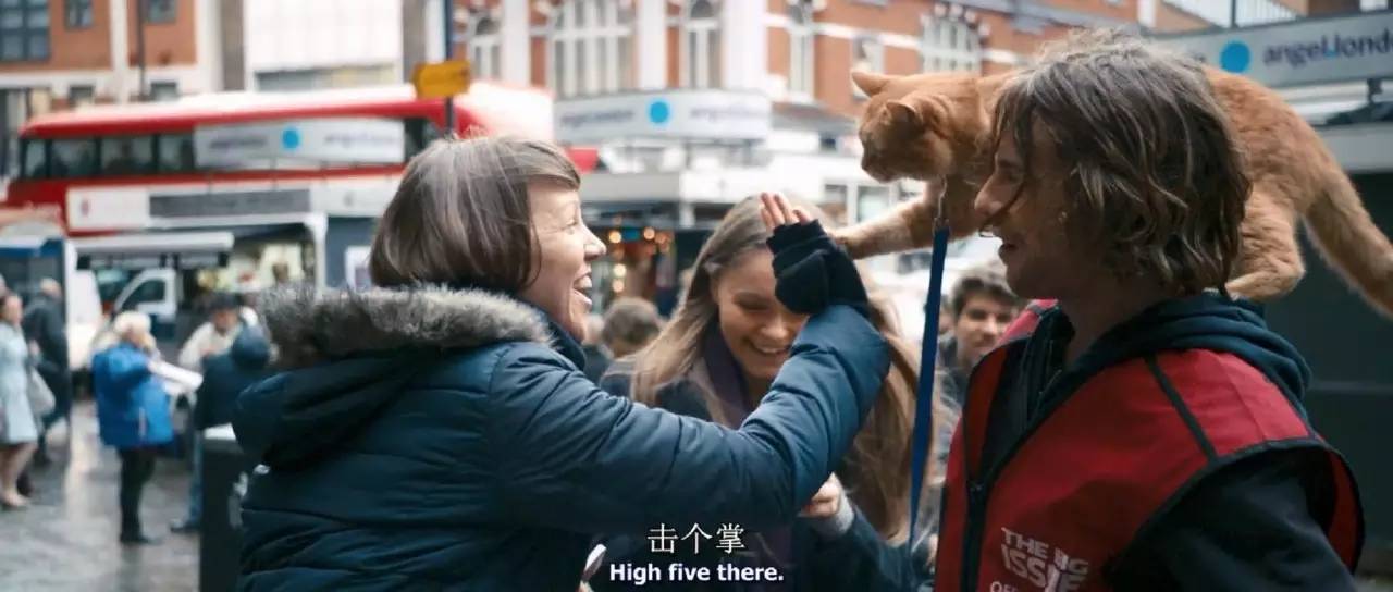 很快,这一人一猫的组合便吸引了过路人的注意, 詹姆斯的经济状况因此得到了巨大的改善。与此同时,詹姆斯结识了住在隔壁的女子贝拉,在贝拉的身上,詹姆斯重新燃起了对爱的渴望。