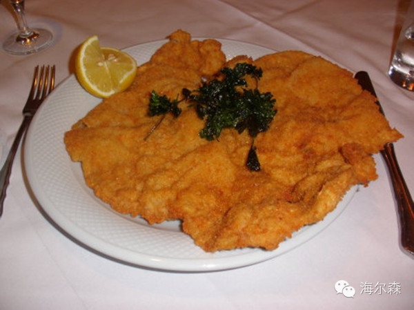 米兰炸牛排:选用的是肉质更嫩的小牛做出来了,味道相当不错~~