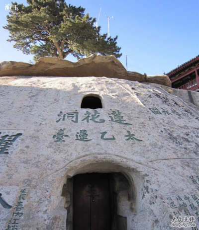新贯寺向南不远有通往莲花洞的小桥,旁边有座小庙。不大的沟口里崖壁壑立,远处山峰云雾缭绕。过桥西上约半小时眼前豁然开朗,山凹里建有“五大老母庙”,院子宽阔、平坦,北侧岩壁附近有大群的翩蜉上下翻飞。举头西望,莲花古寺遥遥在上。经过一小时的上坡路程可以到达。进了寺院往里走就是莲花洞,这洞不怎么高大,也不深,但一朵大若擂鼓的莲花(钟乳石)真是让人啧啧称奇。据说出了莲花寺向上约10多分钟,可以达到另一个神秘的山洞——黑洞。此洞深邃幽暗,洞内向上走到处可见石钟、石笋和千奇百怪的钟乳石。向下走接连是三个海子(深潭),湿滑阴冷,其深不可侧,也曾有过胆大的游客在此命丧黄泉。可惜笔者走差了路,绕道了山峰北侧,竟也远远望见长安平原,听说由此也可以到西翠村。
