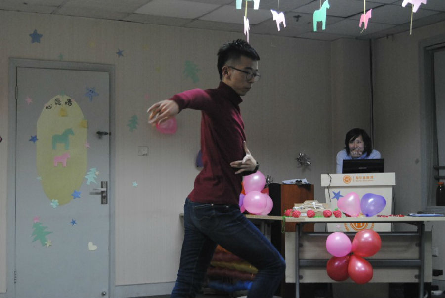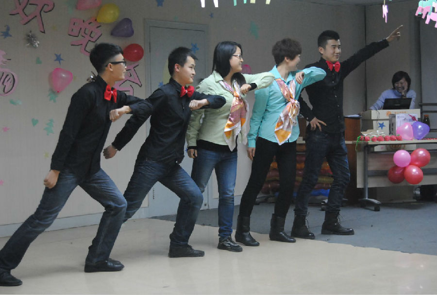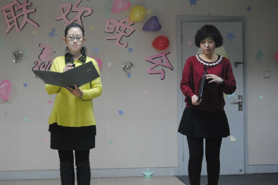 2014年元月18日的早上,小海和同事们还有一名学员一起布置大教室的场地,因为这一天晚上我们要举行一次新年联欢会。我们几个人分工有序经过几个小时的奋战,总算简单的将上课的教室布置的有点气氛。一切准备就绪,就等着学员们的到来。