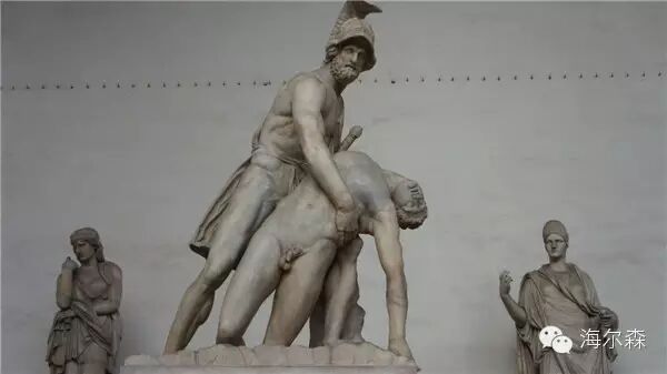 墨涅拉俄斯扶起帕特洛克罗斯的身体,充分展现肌肉与骨骼之美