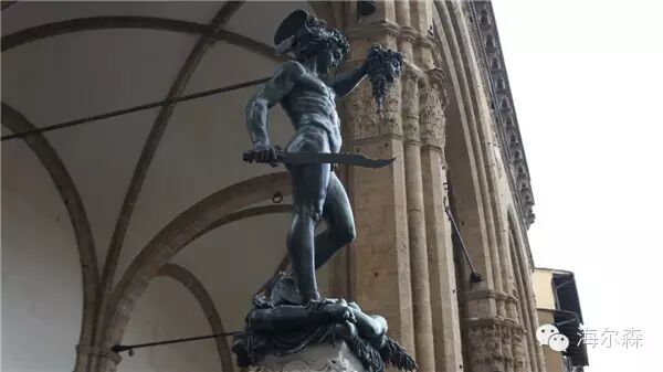 帕尔修斯:古希腊神话中的帕尔修斯的英雄,其高举着被他斩杀的美杜莎头颅。该雕塑是16世纪杰出的金银匠切里尼的佳作。